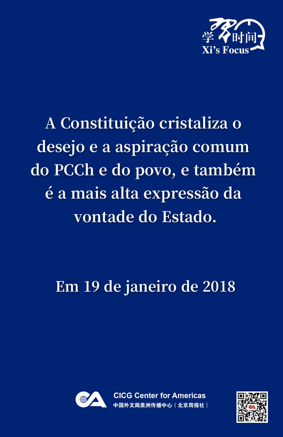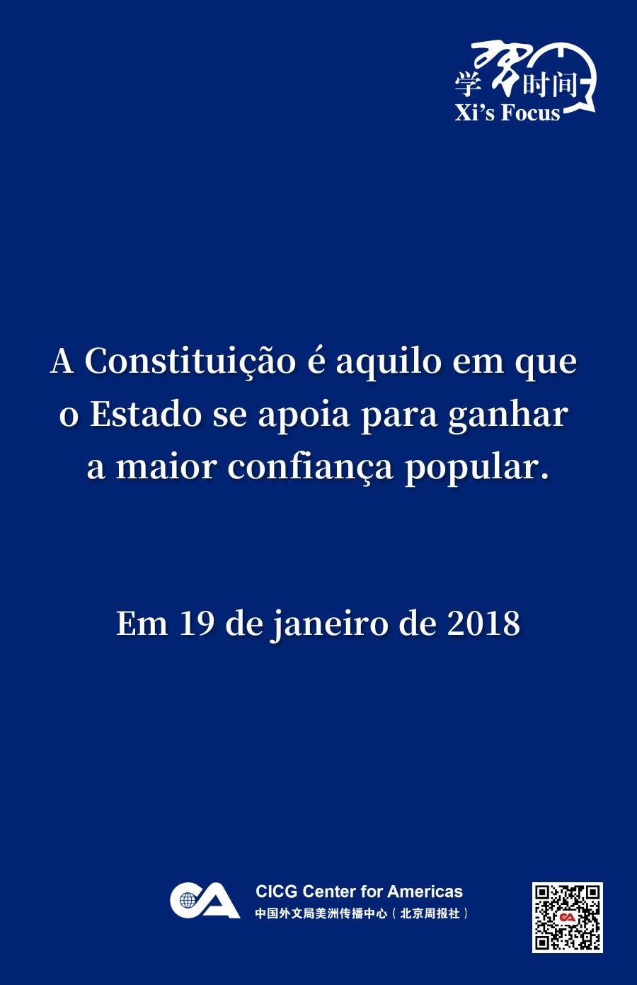 A implementação da Constituição é a tarefa prioritária e o trabalho básico na administração integral do país conforme a lei e na construção do Estado de direito socialista. Seguem trechos editados de discursos do presidente chinês sobre esse tema desde 2017.